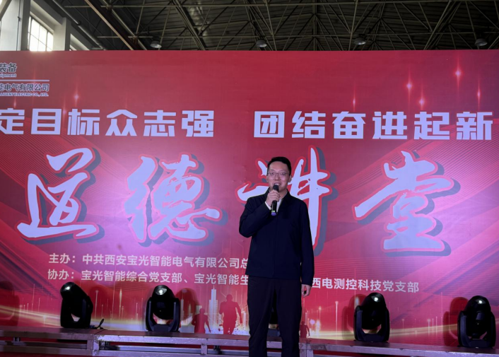 为深入学习贯彻中央八项规定精神学习教育,传播道德故事,积极营造学习、崇尚、争当道德模范的浓厚氛围,喜迎中华人民共和国诞辰76周年,共赴未来,持续推动公司高质量发展,2025年9月29日西安宝光智能党总支与西电测控科技党支部联合举办主题为:铆定目标众志强,团结奋进起新航道德讲堂活动。宝光集团党委副书记、总经理孙博出席活动并总结讲话。西电测控科技党支部书记白欣,宝光智能班子成员参加活动。
