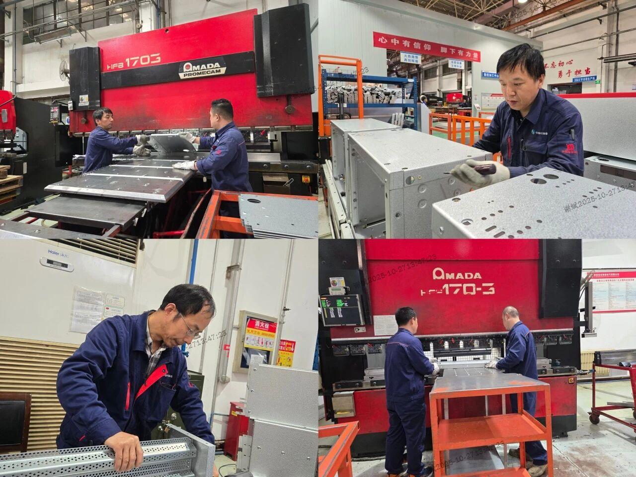 作为电气配套产品的关键环节,母线加工的精度与效率直接影响后续生产链路。为抢赶进度,母线加工组从 “细” 处着手、向 “精” 上发力:一方面,优化加工流程,提前梳理四季度订单所需母线规格,建立 “订单 - 物料 - 工序” 对应台账,避免物料错配、工序脱节;另一方面,强化设备运维与技能提效,班组骨干带头钻研加工工艺,通过优化冲剪、压花、倒角、铣圆弧、铣圆角、折弯等程序,将单根母线加工时间缩短 15%,同时严格执行 “首件检验 + 过程巡检 + 成品复检” 三重质量把控,确保每一批次产品零瑕疵交付,为下游工序打通 “快速通道”。