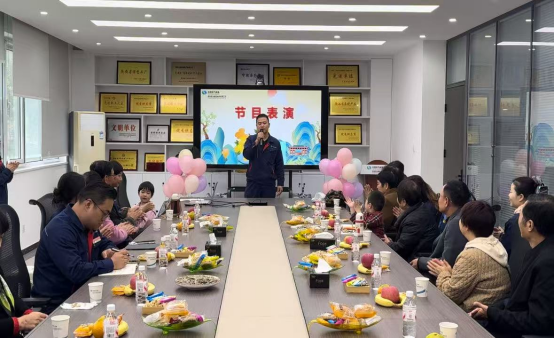 活动开篇,老人们在会议室整齐就座,大屏幕上滚动播放的企业发展纪实与职工团建视频,让老人们直观感受到宝光智能的发展脉络与人文氛围。随后的文艺展演环节,一首《父亲》唱得情真意切,现场掌声此起彼伏。