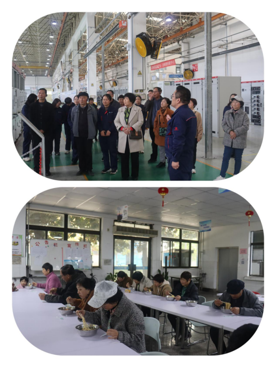 随后在活动负责人的带领下,老人们走进智能化生产车间。活动负责人结合生产线实景,生动介绍了产品构造、制造工艺及市场应用,当走到子女们的工作岗位前,老人们驻足凝视,看着子女熟练操作设备、认真核对参数的身影,脸上满是自豪。参观结束后,食堂为老人们备好寓意安康的长寿面,翠绿青菜搭配鲜嫩荷包蛋,热气腾腾的面香里藏着最质朴的祝福,老人们边吃边聊,场面热闹温馨。
