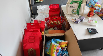 随后,同事和护工们齐心协力将带来的米、面、油、猪肉等食物,还有马年玩偶、洗发水等生活物品搬进康养中心内,将所有物资摆放整齐,并细心叮嘱护工将猪肉冻起来,和老人逐一告别后离开。